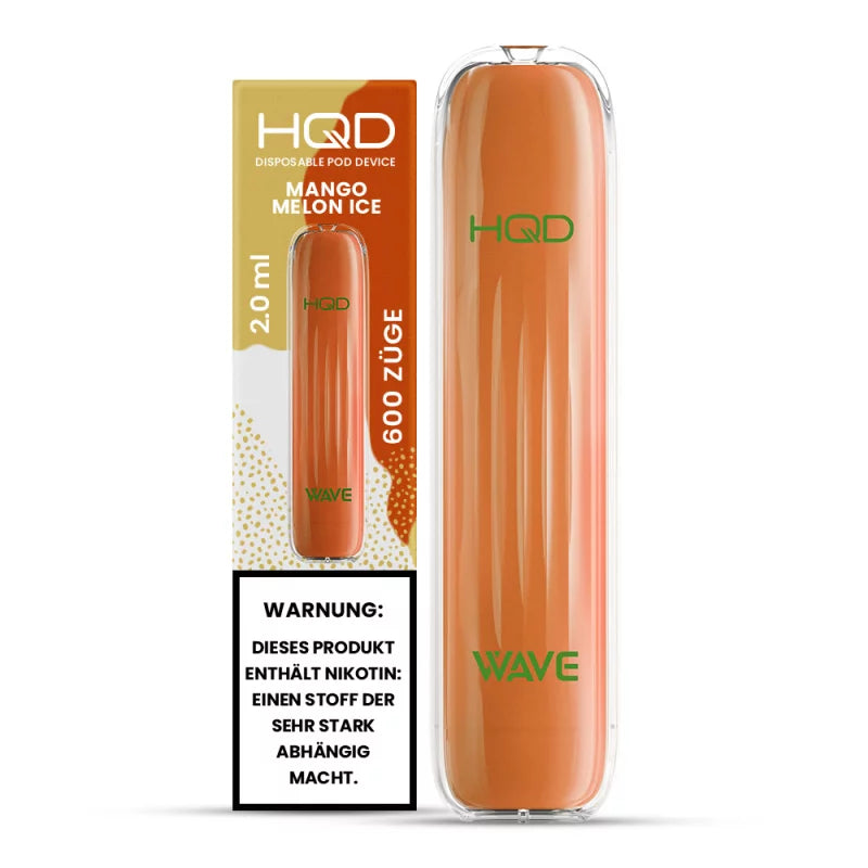 Die HQD WAVE 600 - Einweg E-Shisha - Mango Melon Ice ist eine der zahlreichen geschmackvollen und hochwertigen Einweg E Zigarette, die Sie bei uns finden werden. Meistens ist es der Geschmack der E Zigarette, der die Shisha-Fans und Vape-Liebhaber von der HQD überzeugt. In diesem Fall ist es aber viel mehr, denn die HQD Wave Einweg Shisha To Go lässt sich nicht nur für simplen Genuss nutzen, sondern auch als sinnvoller Ersatz für Zigaretten oder Shisha. Dies liegt an dem verwendeten Vape Liquid, welches Nikotin enthält und so den Umstieg erleichtert. Anstatt Tabak zu nutzen, können Sie die HQD Wave Vape verwenden und so weiter dampfen.